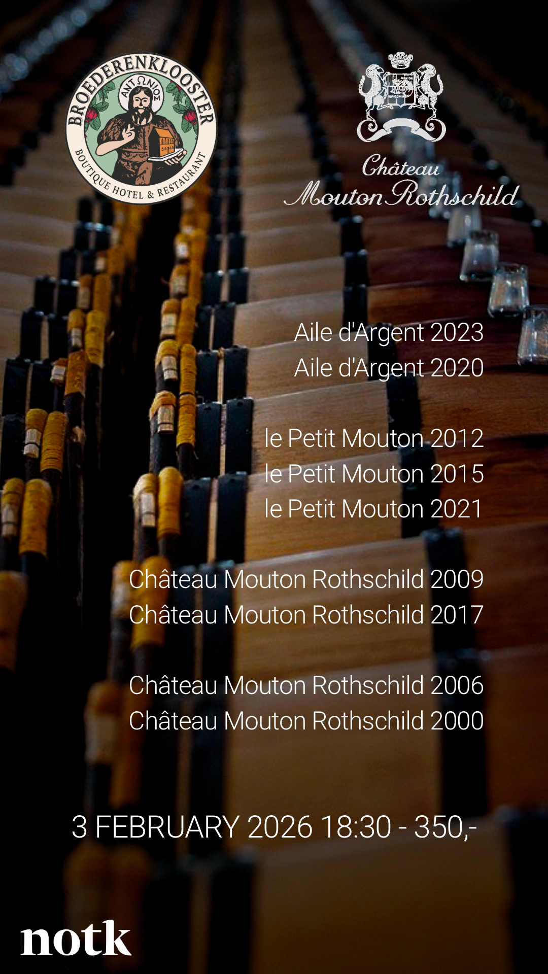 : Ticket – DINER bij Broederenklooster met Mouton Rothschild – 03 FEB